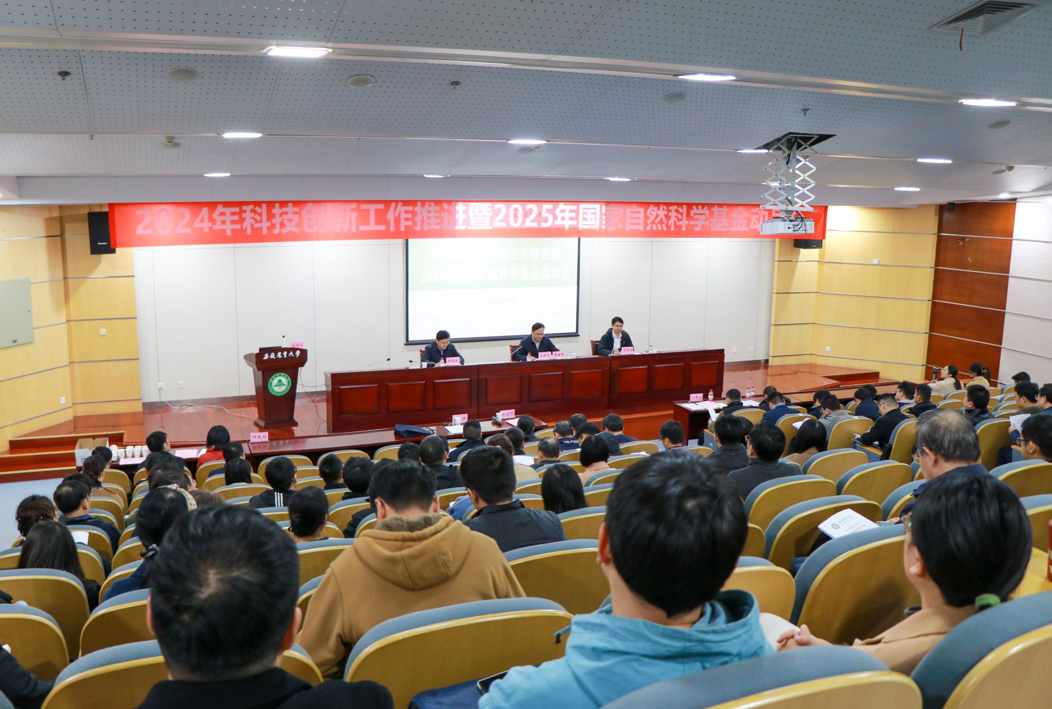本网讯 11月19日下午,我校在图书馆第二报告厅召开2024年科技工作推进暨2025年国家自然科学基金动员会,校领导操海群、吴祥为出席会议。