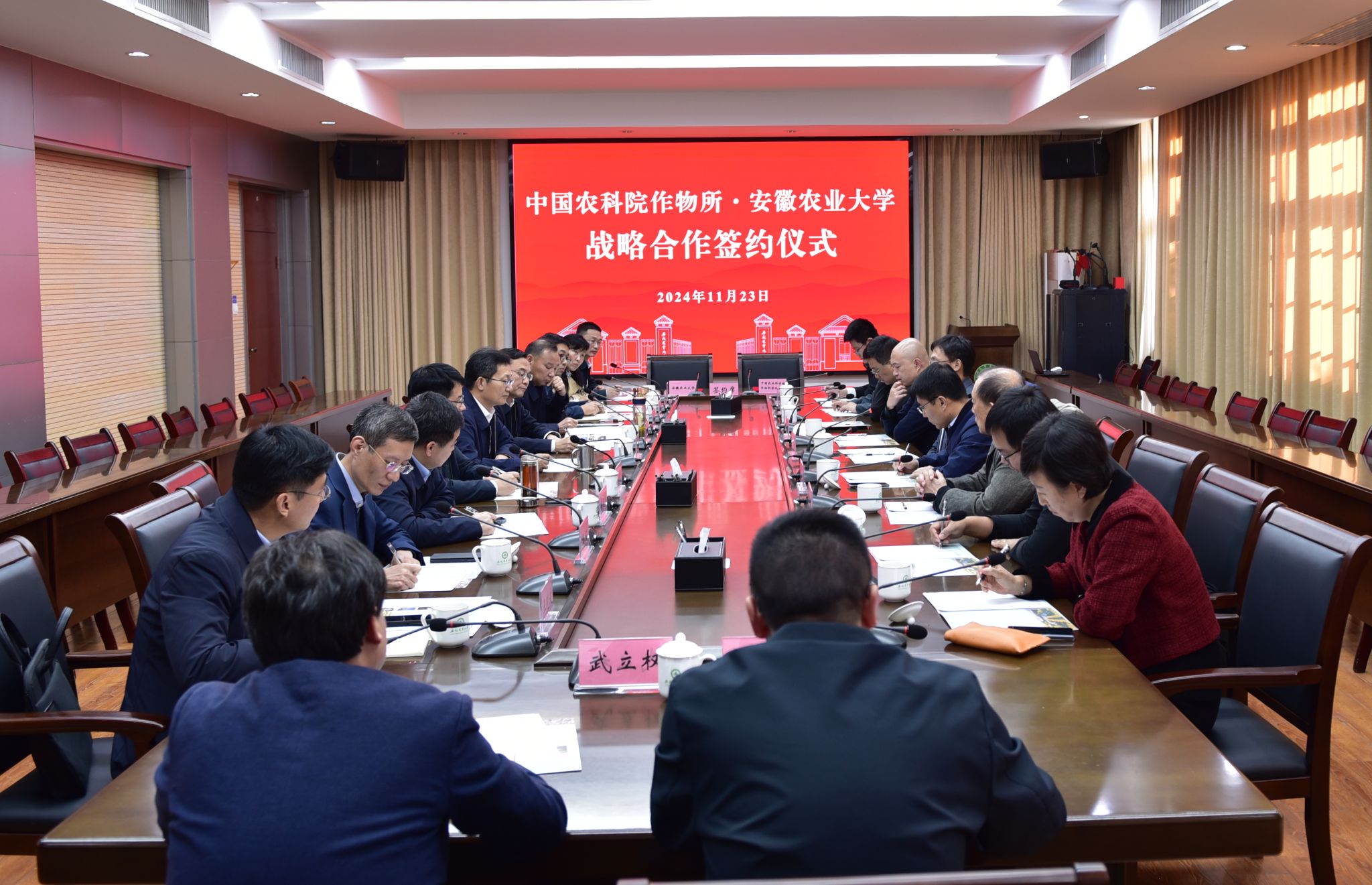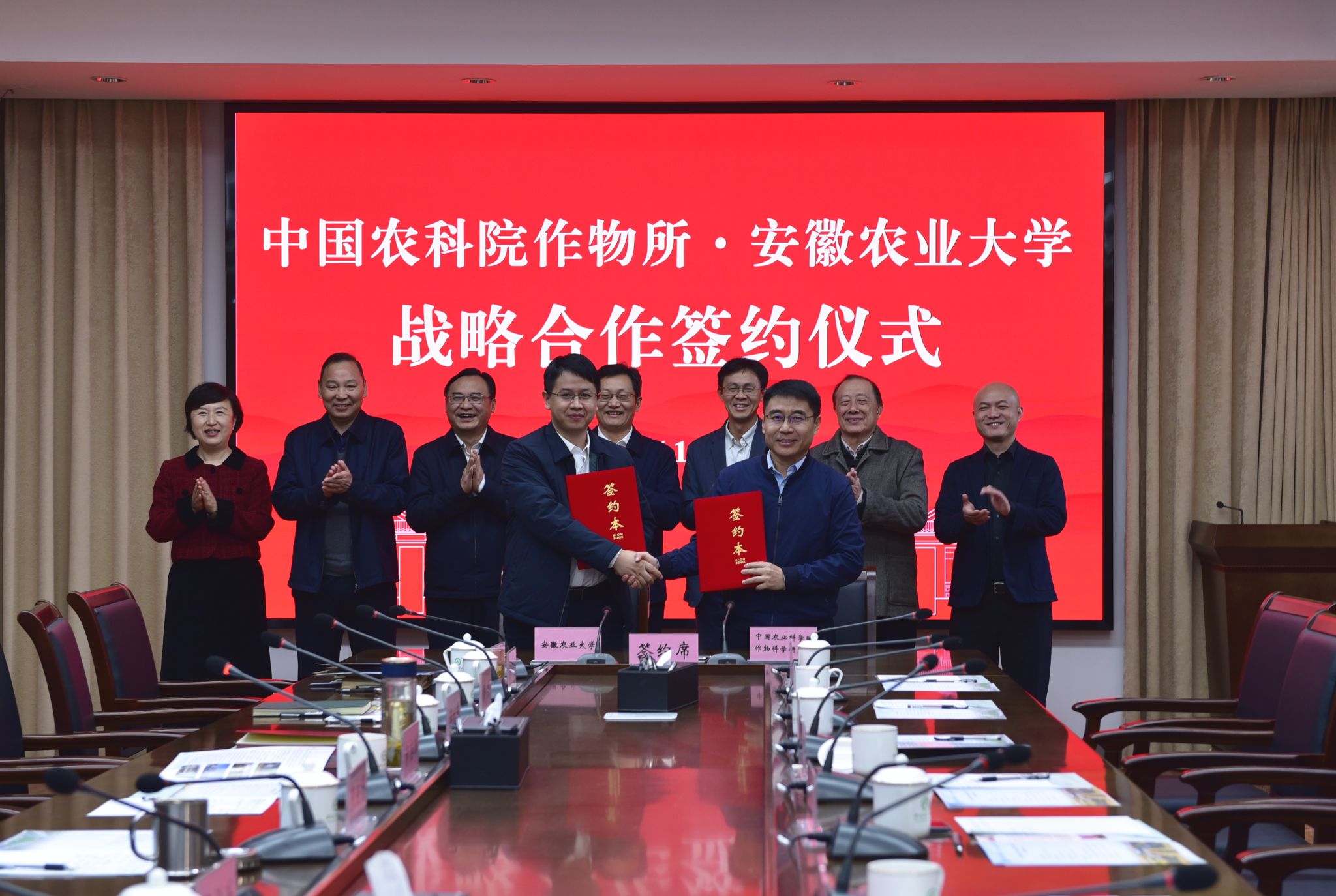 中国农业科学院作物科学研究所科研院负责同志、相关创新团队专家,我校相关处室及学院负责同志参加了会议。签约仪式前,作物科学研究所相关专家考察了庐江种质资源圃,并为学校师生做了学术报告。(文/编辑/张亚彪 图/刘兵 预审/王晓波 审核/夏晓昀)