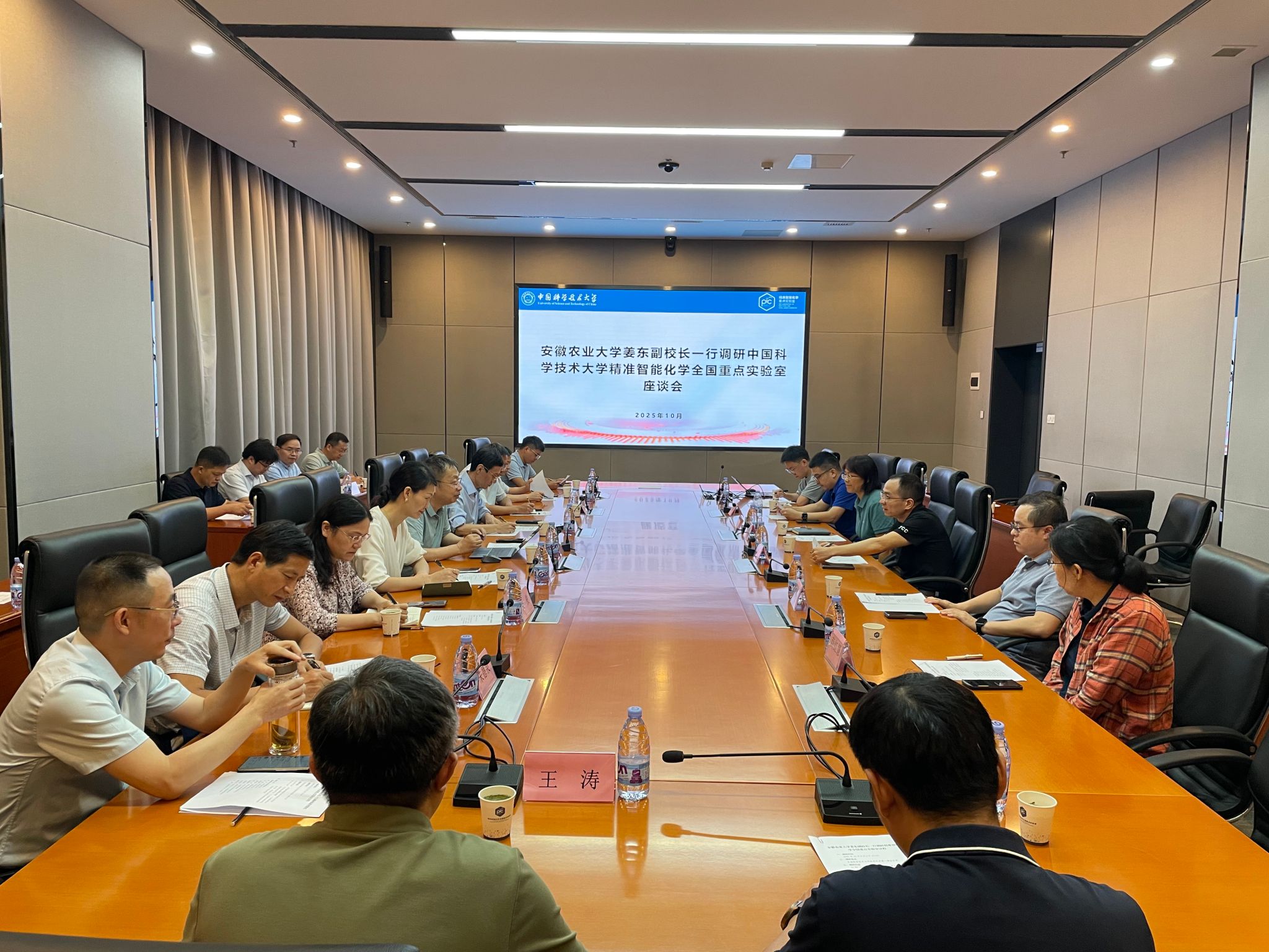 本网讯 为主动对接国家战略科技力量,探索人工智能驱动农业科技创新的新路径,10月9日上午,校学术副校长姜东带队赴中国科学技术大学调研精准智能化学全国重点实验室,并与实验室主任李震宇教授等进行座谈。
