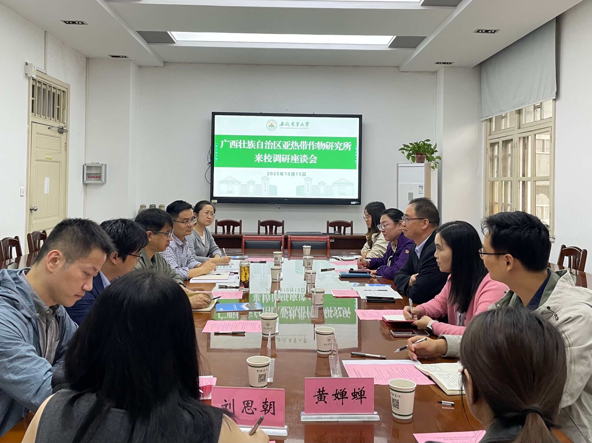 本网讯 10月15日下午,广西壮族自治区亚热带作物研究所党委副书记、所长陈赶林一行来校调研。校党委常委、副校长吴祥为出席并主持座谈会。