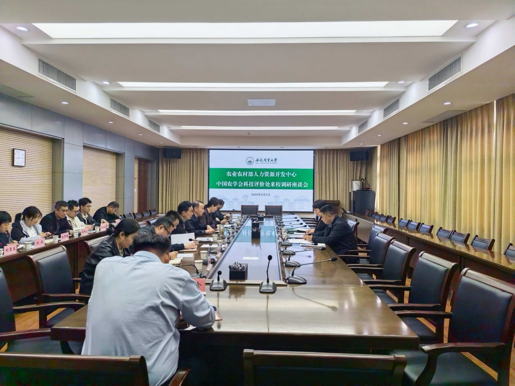 本网讯 4月1日下午,农业农村部人力资源开发中心、中国农学会科技评价处冯桂真研究员、李贺副处长一行来校调研,学术副校长吴文革主持座谈会。