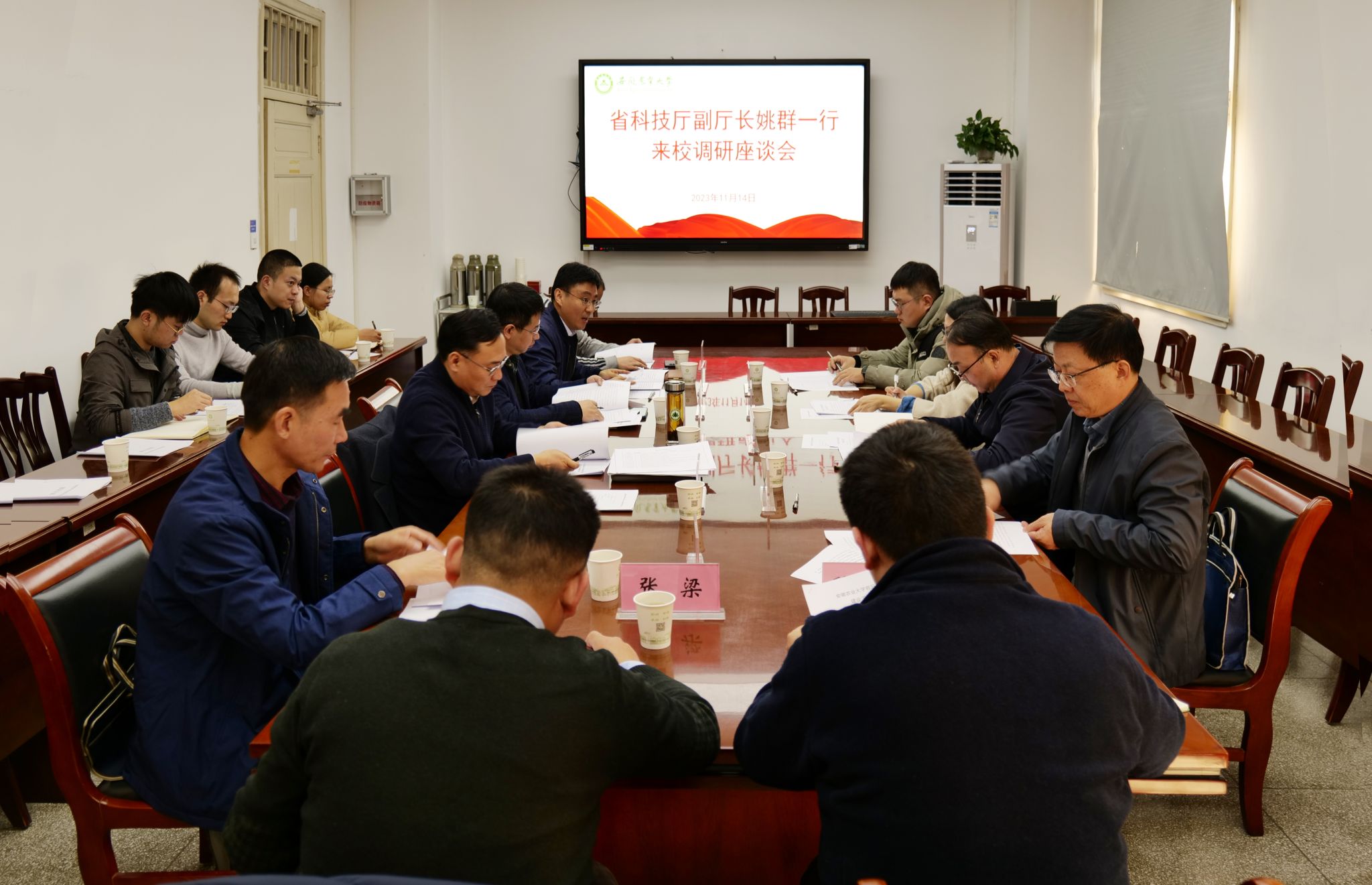 本网讯 11月14日上午,省科技厅副厅长姚群一行来校调研农业科技创新工作。校党委书记张庆亮会见了姚群一行,党委常委、副校长操海群陪同调研。