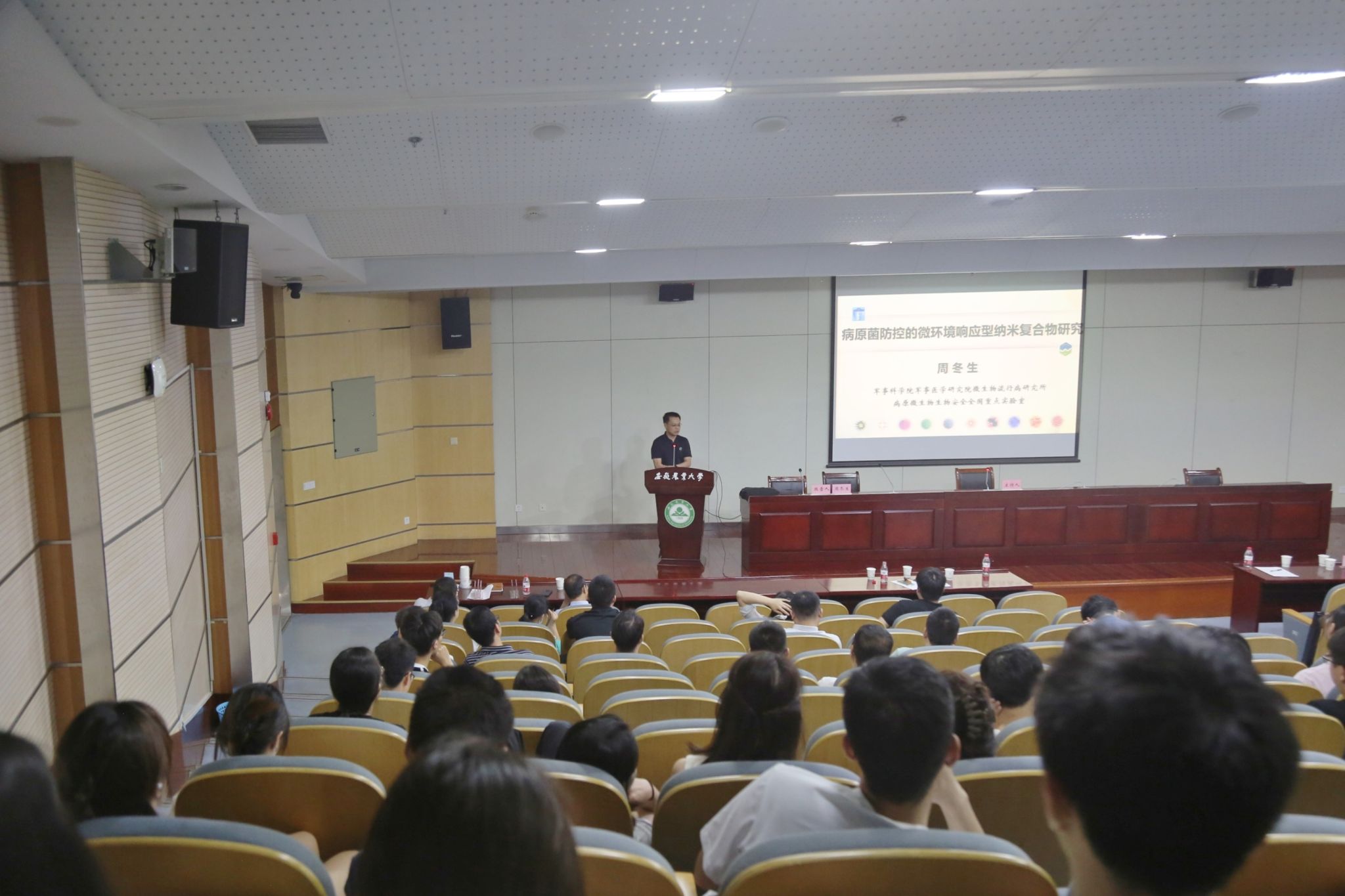 6月18日,中国微生物学会医学微生物学与免疫学专委会副主任委员、军事科学院军事医学研究院微生物流行病研究所周冬生副所长、江佳富研究员应邀来我校做生物安全专题报告。