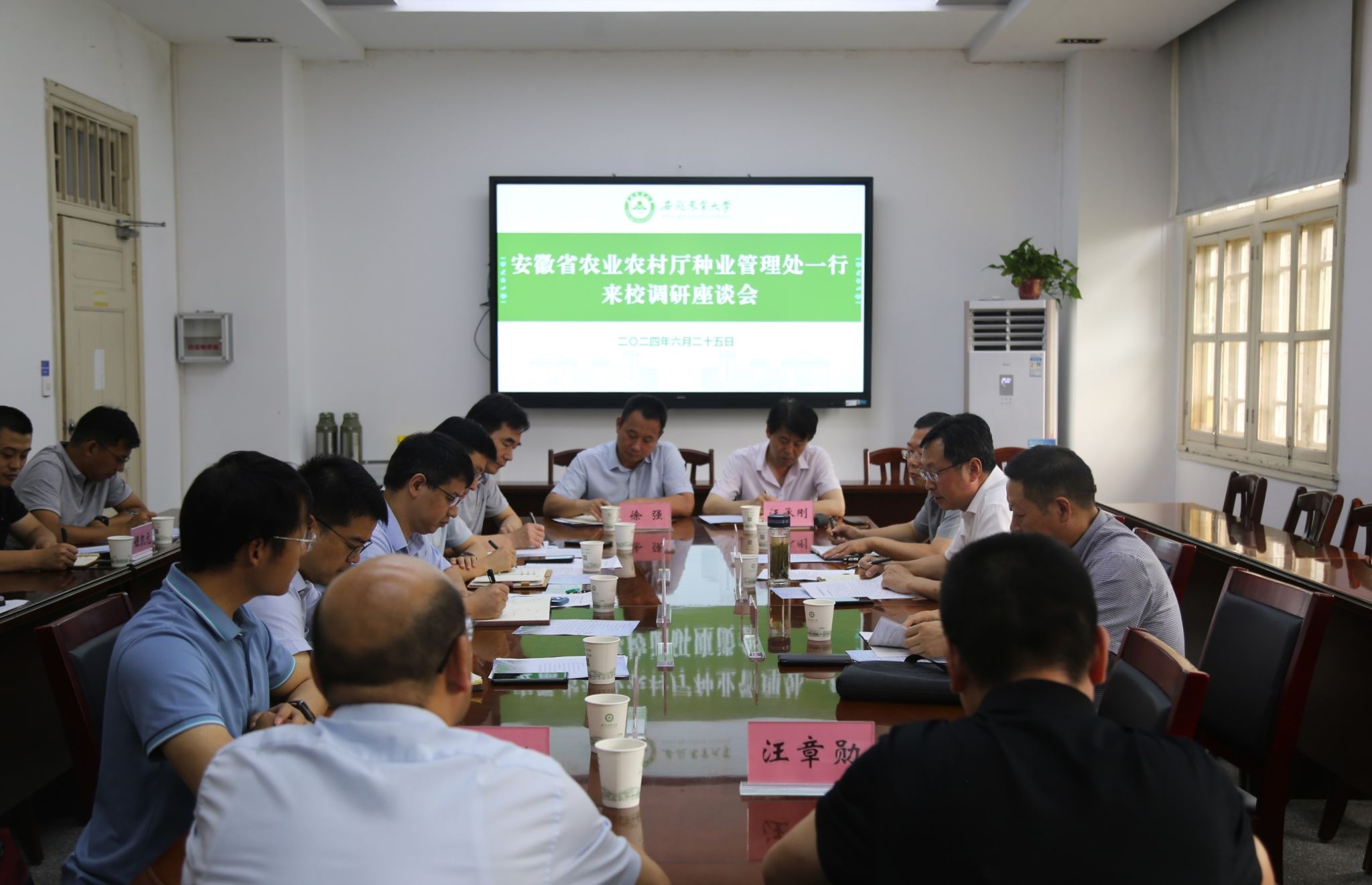 本网讯 6月25日上午,安徽省农业农村厅种业管理处处长、一级调研员刘军一行来校调研交流。校党委常委、副校长吴祥为主持座谈会。