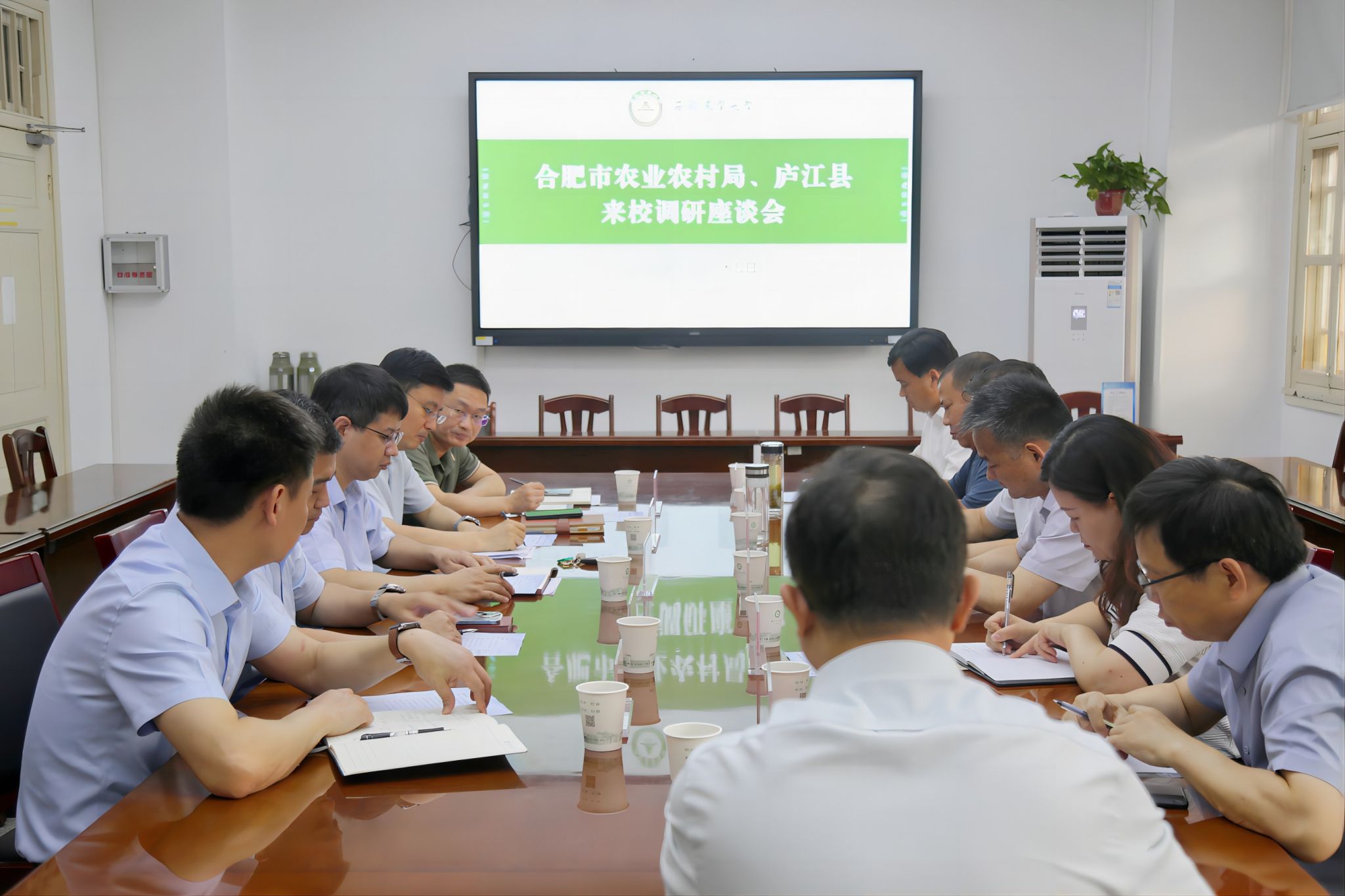 合肥市农业农村局种业管理处、庐江县农业农村局、庐江台创园和我校党政办、科技处、社会合作处、新校区建设指挥部办公室等主要负责同志参加座谈会。(文/张亚彪 图/王辉 编辑/张亚彪 审核/王晓波 )
