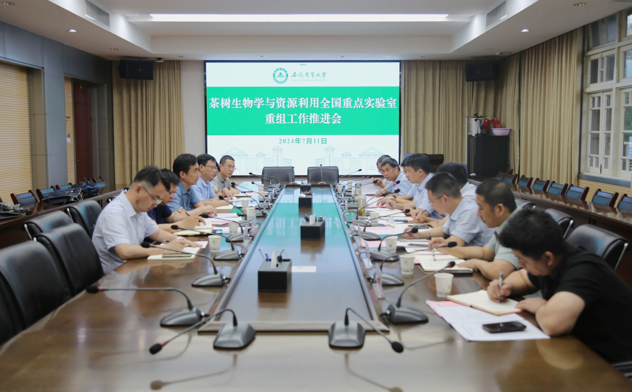本网讯 7月11日上午,茶树生物学与资源利用全国重点实验室重组工作推进会在勤政楼第三会议室顺利召开,人事处、科技处、社合处、研究生院、财务处、国资处、国重室、相关学院负责人参加了会议。会议由校党委常委、副校长吴祥为主持。