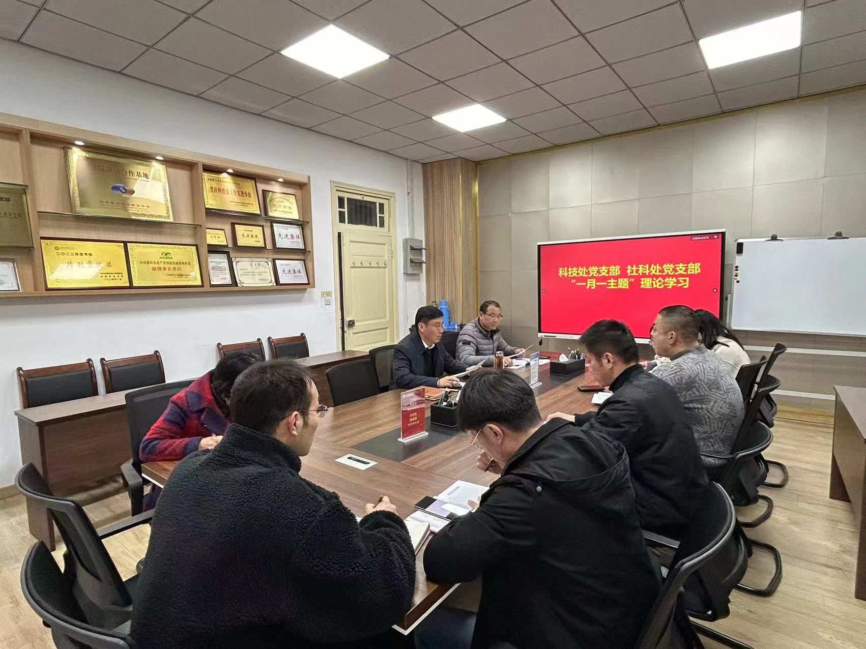 3月12日,科技处党支部、社科处党支部在科技处党员活动室组织开展“一月一主题”理论学习暨民主评议党员工作会议,党支部全体党员参会,会议由科技处党支部副书记叶辉主持。