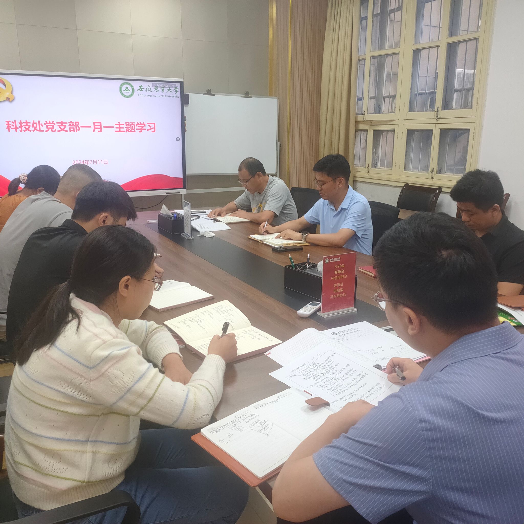 本网讯 7月11日下午,科技处党支部在党员活动室开展一月一主题集中学习暨支委选举会,会议由支部书记王晓波主持。会上支部书记王晓波领学了习近平总书记“在全国科技大会、国家科学技术奖励大会、两院院士大会上的讲话”,要求全体党员要围绕“重点工作”,保持昂扬的斗志,为学校科技工作者做好服务保障;支部副书记叶辉领学了“七一”前夕,总书记在中共中央政治局第十五次集体学习的讲话精神,强调要保持“‘赶考’的清醒和坚定”,全力以赴干好学校科技事业。集中学习后,支部进行了支部委员选举,召开了支委会,明确支委分工。(文/图/编辑 张亚彪 审核/王晓波)