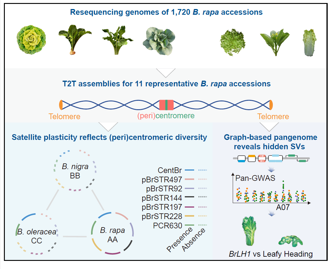 该研究对1720份不同亚种的白菜材料,其中包含我校园艺学院十字花科蔬菜团队301份乌菜种质资源,进行“人口普查”式的基因组重测序,精选7个亚种的11份“诸侯”代表材料,从基因组、泛基因组和泛遗传学三个层面系统刻画了白菜亚种快速分化的遗传基础,把被子植物“快速扩张”的经典问题研究具体落实到一个肉眼可见的演化框架之中;通过构建完整着丝粒图谱,揭示了卫星重复、着丝粒动态与结构变异在芸薹属物种演化中的关键作用,加深了对芸薹属基因组起源与分化顺序的认识。审稿人认为,该工作是Brassica基因组研究领域“一次里程碑式的飞跃”,构建的0 gap基因组与泛基因组资源“树立了群体基因组学研究的新标杆”,有望成为“芸薹属遗传学的里程碑工作”。同时审稿人也指出,这一研究“代表了巨大的工作量,将成为整个领域的重要资源,对植物基因组演化和作物表型多样性的理解具有广泛而深远的影响。