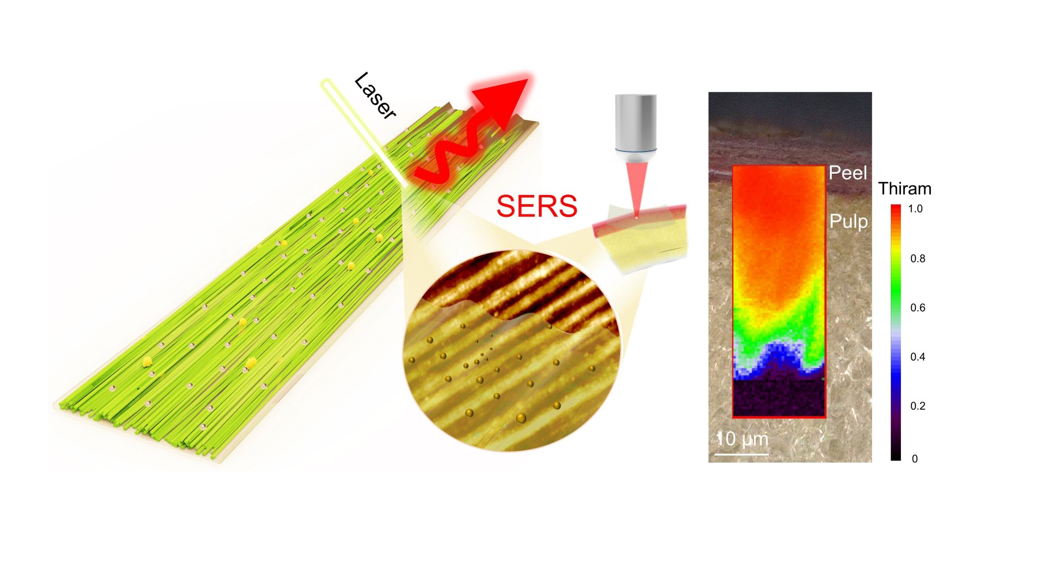 为应对这些挑战,叶冬冬教授团队发展原创性策略制备了表面具有纳米褶皱的再生纤维素复合膜(NWCM-Ag)。这种材料具有良好柔韧性、透光性及高SERS性能,在可视化食品安全检测方面展现出高灵敏性、低成本、大规模制备及绿色环保等特点,为纤维素基SERS材料的应用提供了新思路。