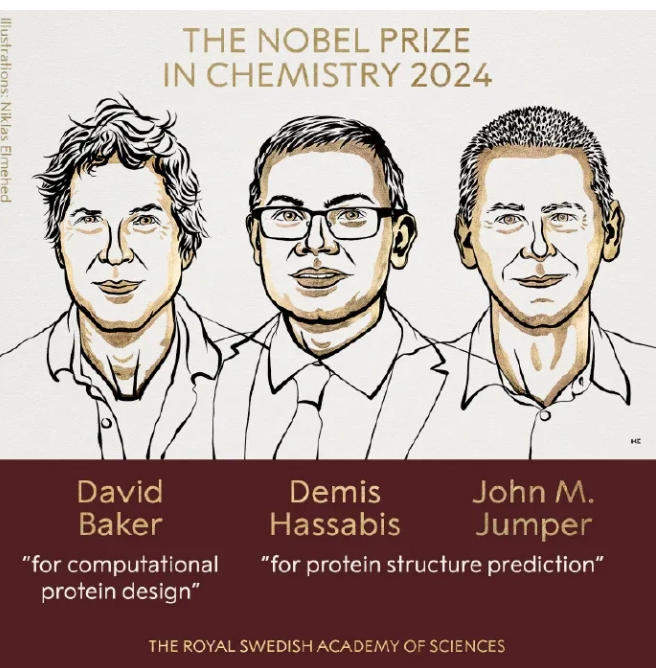 当地时间10月9日,瑞典皇家科学院宣布,将2024年诺贝尔化学奖授予大卫·贝克(David Baker)、戴米斯·哈萨比斯(Demis Hassabis)和约翰·江珀(John M.Jumper),以表彰他们在蛋白质设计和蛋白质结构预测领域作出的贡献。
