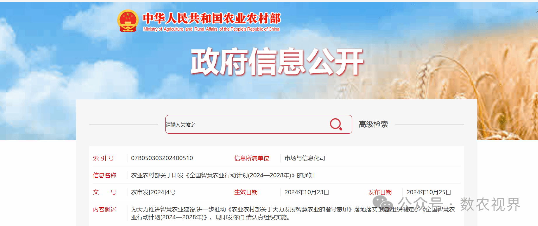 为大力推进智慧农业建设,进一步推动《农业农村部关于大力发展智慧农业的指导意见》落地落实,我部组织制定了《全国智慧农业行动计划(2024—2028年)》。现印发你们,请认真组织实施。